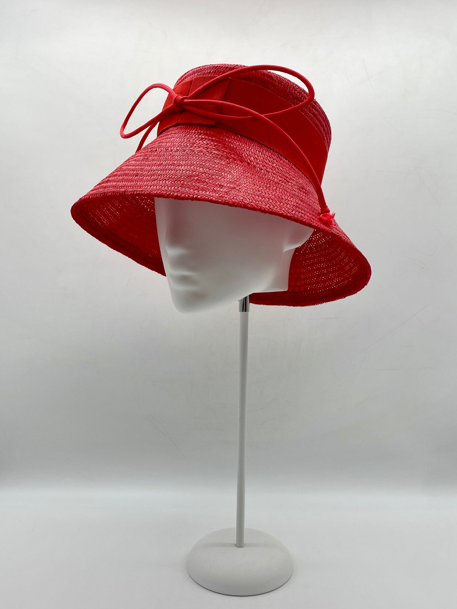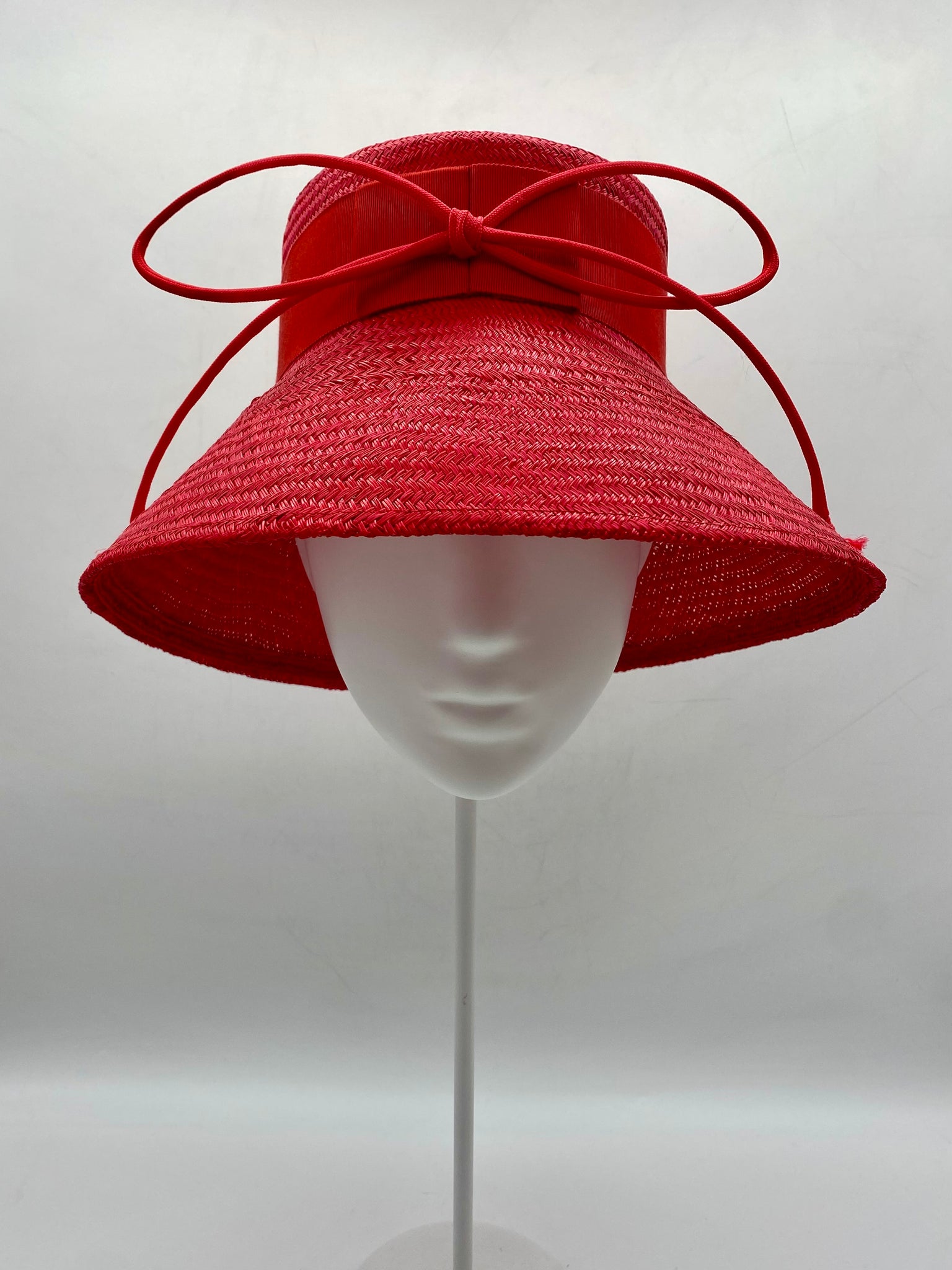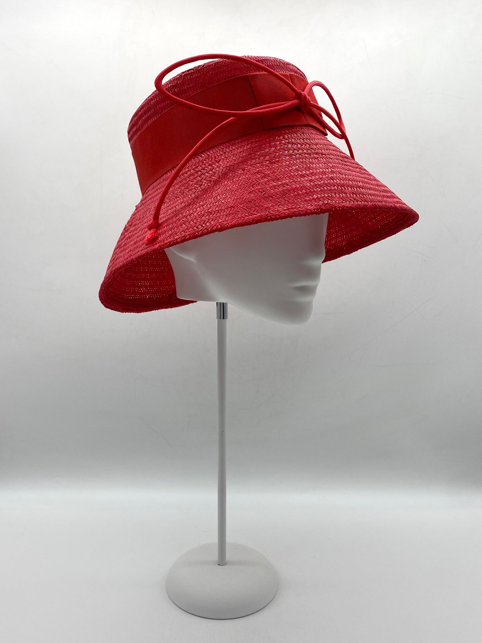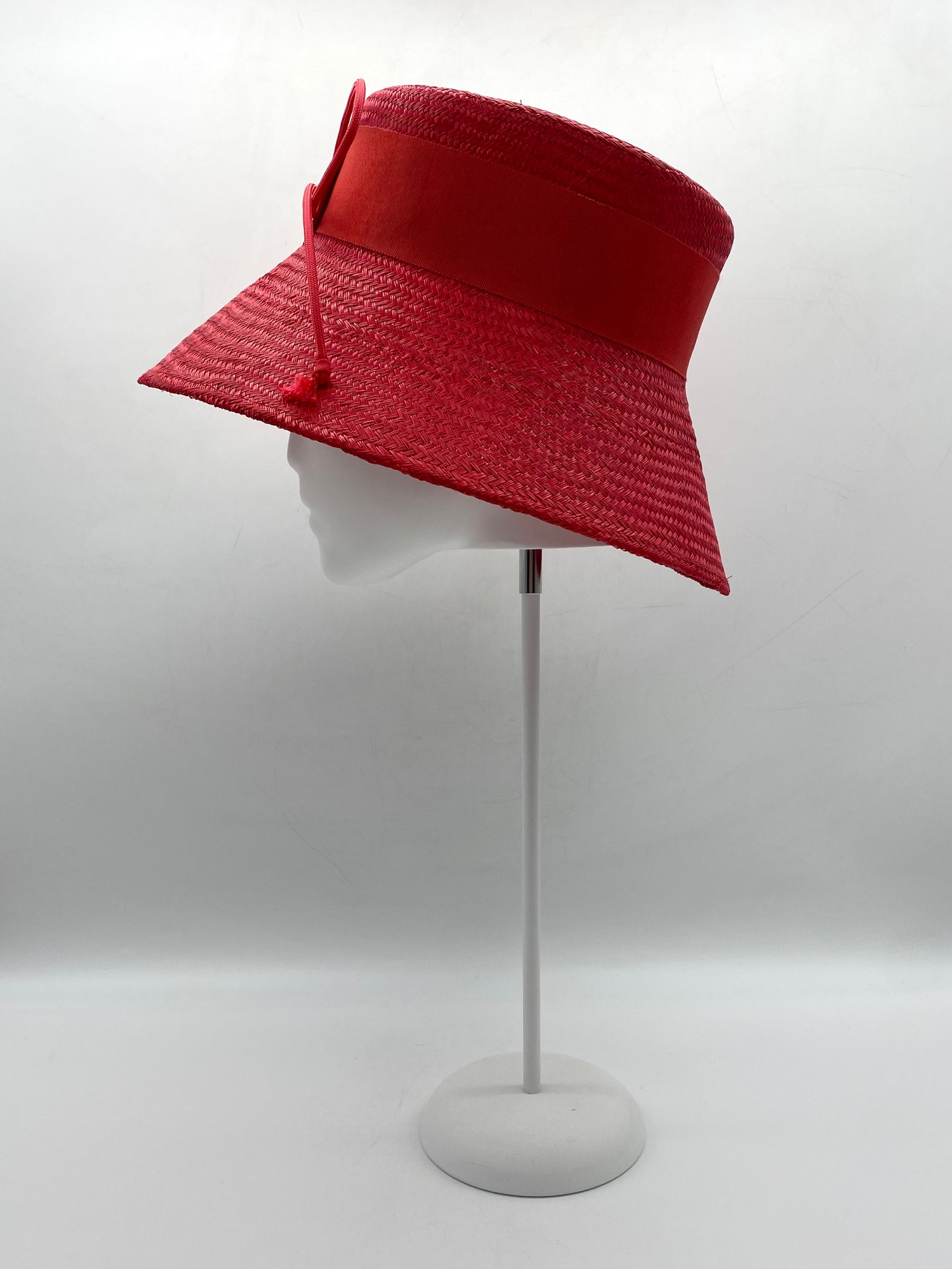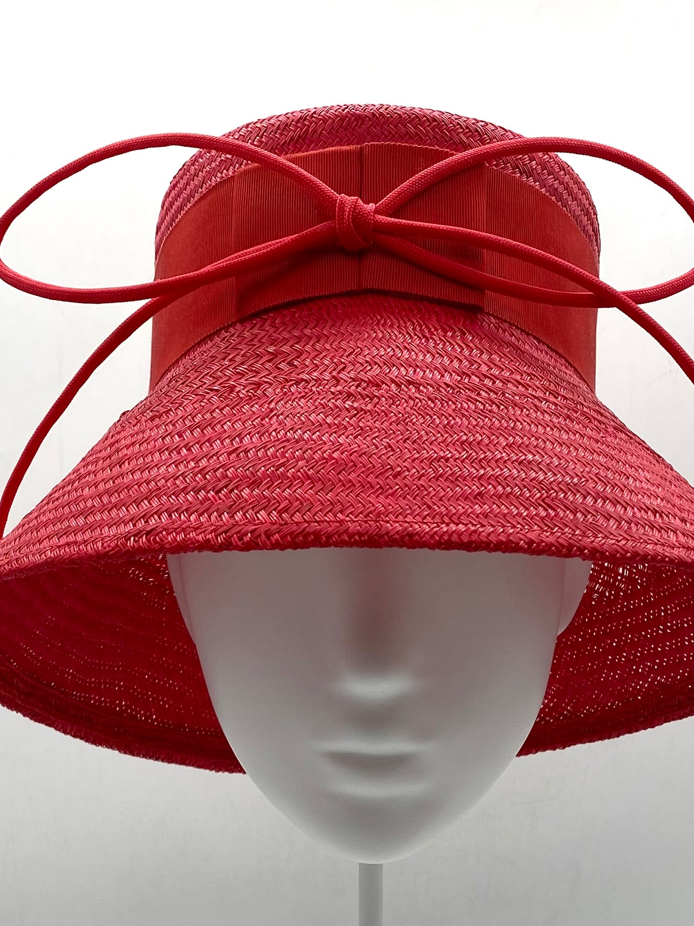 Materials: Buntal straw, petersham ribbon, millinery wire, cord.