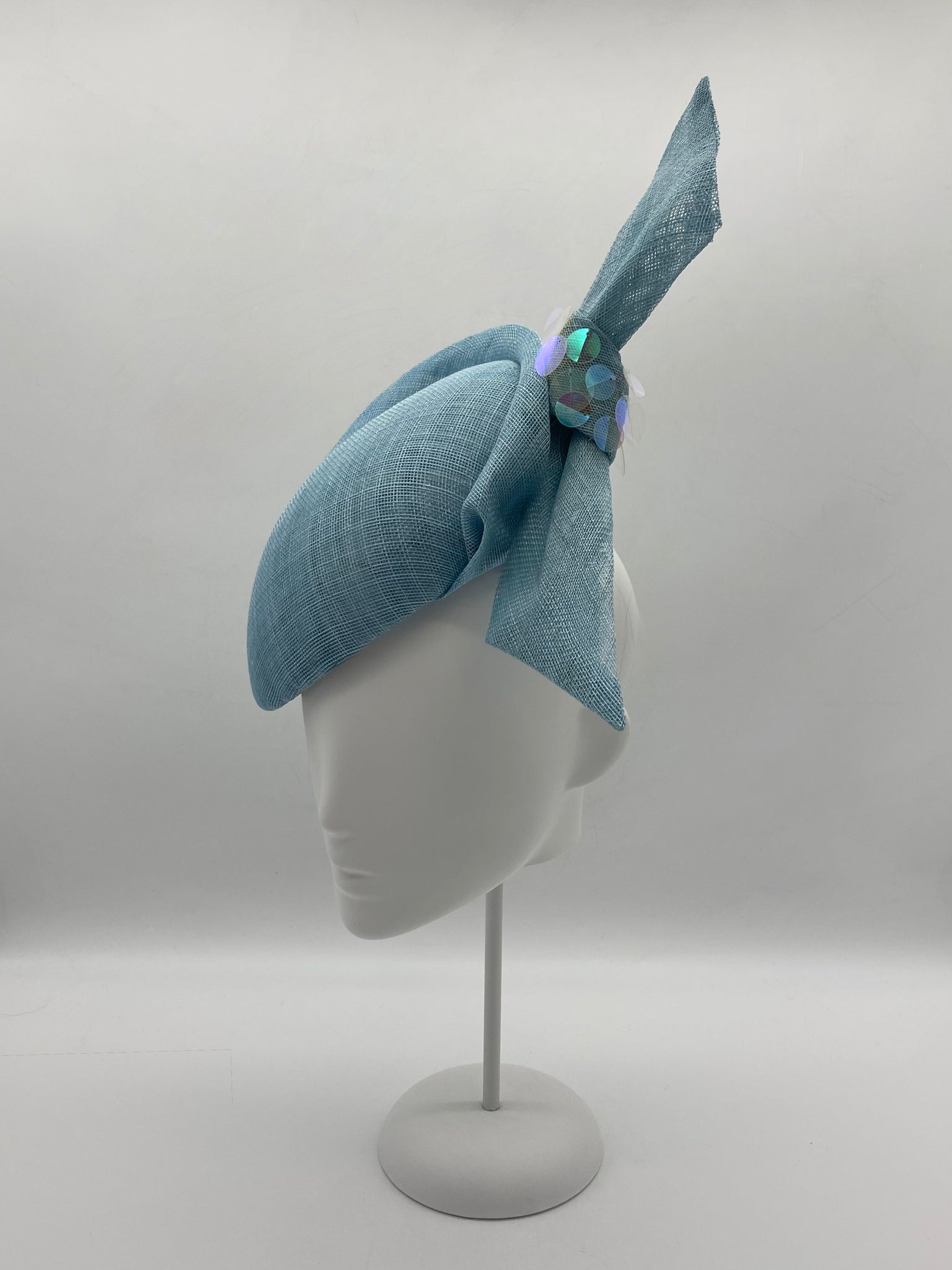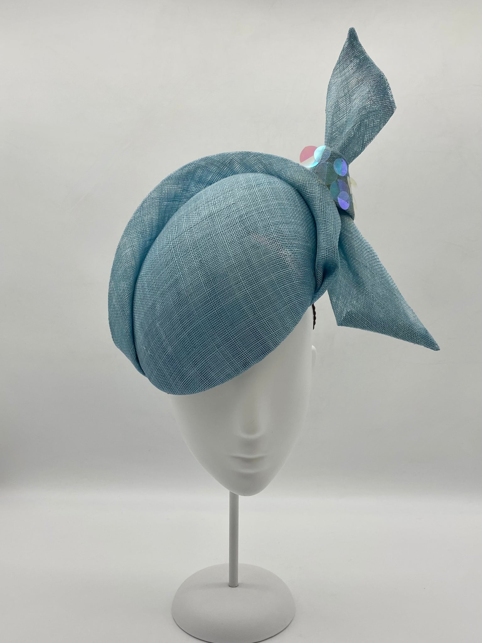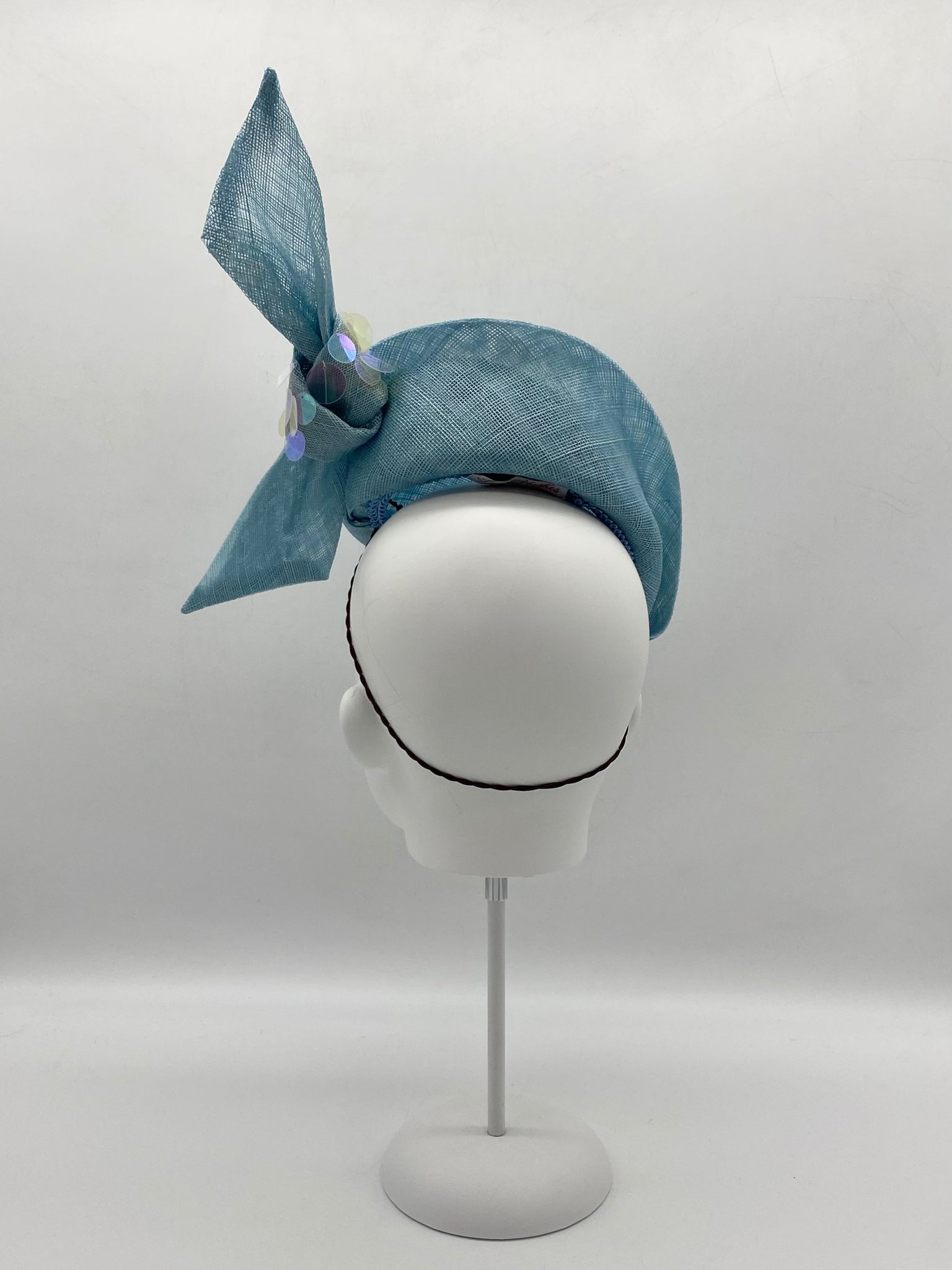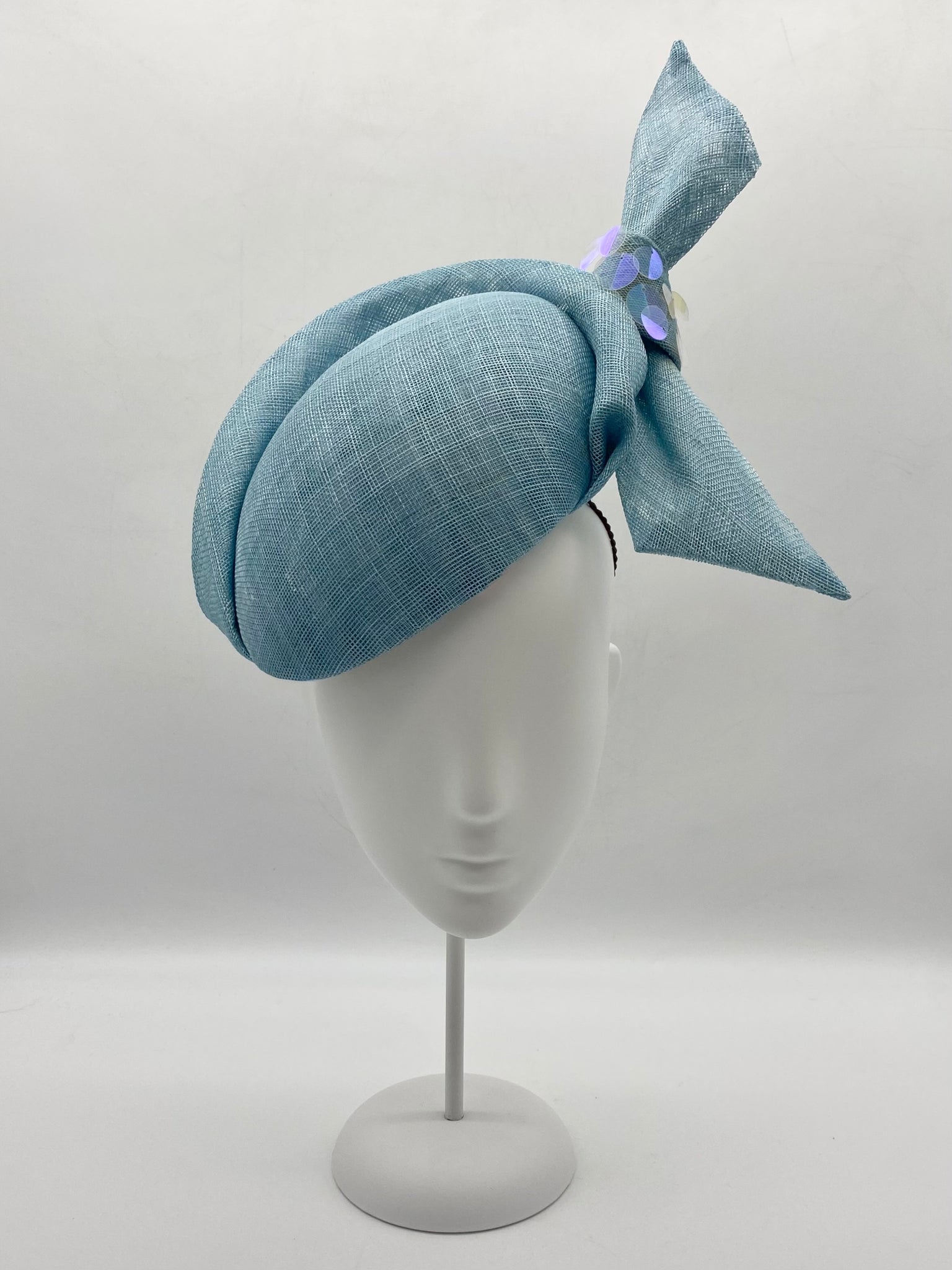 Materials: Sinamay, braid, millinery wire, sequins.